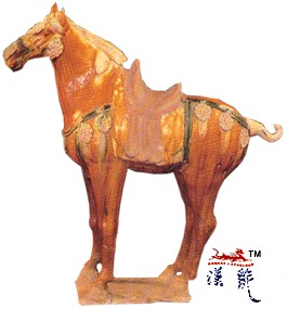 .绿彩红釉马,