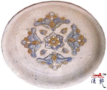 .白釉刻花三足盘,