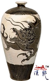 磁州窑白地剔黑龙纹瓶