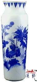 .顺治青花人物圆直筒瓶,