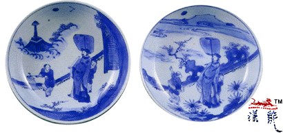 日高升图,一为赏月图,所绘人物、山石、塔等虽均具明代风格,但青花发