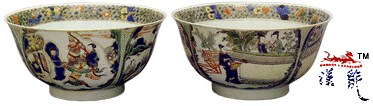 .康熙五彩开光人物碗(一对),高10厘米,口径20.2厘米,敞口,腹较深,直足,