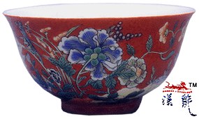 .康熙红地五彩花卉纹碗,高5.8