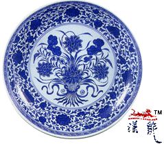 .雍正青花束莲纹大盘,高6.2