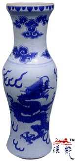 .顺治青花云龙纹瓶,高54