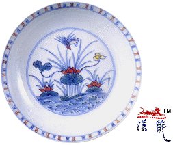 鸟图案,盘外壁绘鸳鸯莲