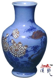 .乾隆蓝地青花釉裡红花鸟图瓶,