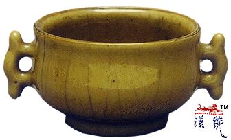 施黄釉,釉面开片,足上包釉,
