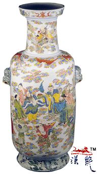.雍正粉彩群仙祝寿图双狮耳瓶,