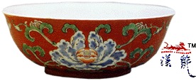 .雍正红地五彩花卉纹碗,
