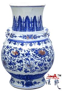 饰虎面双耳,主题纹饰是缠枝莲花纹,