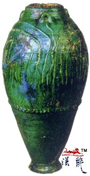唐 孔雀蓝釉三系陶瓶,