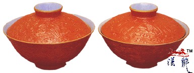 乾隆仿雕漆釉盖碗(一对),高7.6厘米,口径11.4厘米,撇足,圈足,