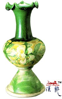 花瓣口三彩刻花瓶,