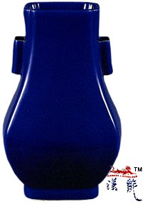 光绪祭蓝釉贯耳瓶,
