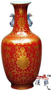 外以珊瑚红釉为地,釉上