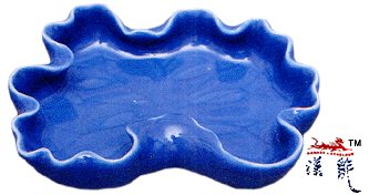道光蓝釉荷叶形笔舔,高2厘米,长径9.5厘米,此器造型为荷叶状,