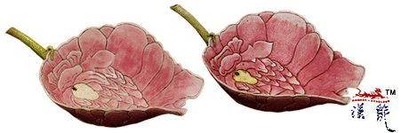 光绪粉彩秋操杯(一对),高5.4厘米,长20厘米,宽18厘米,此器形制为變形牡丹状,