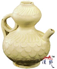 .白釉雕花葫芦式执壶,