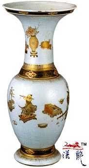 墨彩描金人物博古纹瓶,