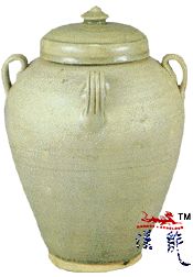 汉.青釉四耳盖罐,通高