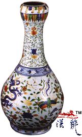 .五彩龙凤长颈瓶,通高