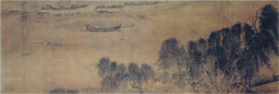 此图卷描绘平湖柳堤,微波轻荡,碧叶莲莲。用墨以淡为宗,从中可见其父马远的显著影响。