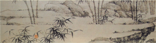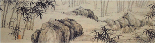 (1245——1320),字仲宾,号息斋道人,蓟丘(进北京)人。善画枯木竹石,尤善双勾设色竹及水墨竹。此图原为长卷,约在明代中期时被分割为前后两卷。前卷画慈竹、方竹各一丛,现藏美国堪萨斯纳尔逊•艾特金斯美术馆。这里所选藏故宫博物院的一段为后卷。图中所画兰、竹、石、梧名“四清”,意喻君子的高洁品性。画中枝叶虽密,但笔笔秀雅简洁,墨色浓淡相宜,变化自然。