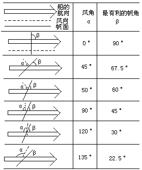 汉代,我国使用风帆的技术已经成熟。秦汉时期,我国早已能凭借季风进行大规模航海。没有成熟的风帆使用技术这是不可能的。西汉刘安《淮南子》说:“辟(譬)若伣[qiàn欠]之见风也,无须臾之间定矣。”东汉许慎注说,“綄[huǎn缓],候风也,楚人谓之五两也。”伣是古代测风、观察风向的一种设备,后来,有人也叫它为五两。“伣”这种测风仪商朝就有了。汉代沿用下来。这实际是一条为了测风而绑在杆顶上的丝绸带子(或羽毛)。有风的时候又随风而摆动,据它摆动的方向可知风向。汉武帝所建的建章宫上有两只相风(观察风向)的铜凤凰。古地理书《三辅黄图》说:“铜凤高五尺,饰黄金,栖屋上,下有转枢,向风若翔。”东汉张衡作过相风铜鸟。当然,这都是很堂皇的了。为什么又叫“五两”呢?因重量必须在五两以上,八两以下,太重难以吹起,太轻则易于旋转,就不好掌握风向了。这种测风仪,由于结构简单实用,航海中又很需要就很容易移到船上去使用。唐代诗人李白《送崔氏昆弟之金陵》诗中有“水客弄归棹,云帆卷轻霜,扁舟敬亭下,五两先飘扬”句,说明了这一问题。后代还有在船桅顶端悬挂“鲤鱼旗”的,它就是从“伣”美化发展而来的,也是一种测风仪。 风帆的结构和驭风技术最晚在东汉已经完备了。帆有一类是用丝织物或布做的,叫“布帆”;另一类用竹蔑或其他植物纤维做的,叫“蓆帆”。从结构上看,一类是软帆,如布帆、蒲草帆,没有横向的帆竹支撑,只能在正顺风时用人字桅悬挂,不能斜移,也不能转动。另一类是硬帆,是用与帆横面等长的若干根竹竿等矩支撑在帆的一面,或是交错穿插在帆的两面上,这种横竹竿叫帆竹,它可以支撑帆面使之平整,可以更有效地利用风力。硬帆可以挂在单独的桅杆上,又可以围绕杆来转动,形成平衡纵帆。 东汉丹阳太守万震著《南州异物志》,叙述了当时南海航海者的风帆驭风技术。书中说明了帆面悬挂的位置在驭风中的作用及帆面悬挂的样式与受风的关系:“其四帆,不正前向,皆使斜移,相聚以取风吹。风后者激而相射,亦并得风力。若急,则随宜增减之。斜张相取风气,而无高危之虑,故行不避迅风激波,所以能疾。”这使我们了解到汉代海船的风帆使用技术。海船在驶风航行时,随风向的顺逆不同而采取不同的帆位布置。这种方法现代木帆船还在使用。船工有“船驶八面风”的说法。也就是帆船要利用各种风向来驭风航行。八面风指相对于海船航向的八种风向,即顺风、逆风、左、右侧风(即左右横风)。左、右斜顺风,左右斜逆风。各种风吹来,都与船体纵中线形成一个夹角。当正顺风时,风向与船体纵中线一致形成0°角,正横风时形成90°角,正逆风时形成180°角。海船的航向与风向在0°—180°间,这样,由于风向的不同会形成不同的夹角,这种夹角叫“风角”。当风角成0°时,海船航向与风向一致,船帆全面正迎风吹,是利用风力的最佳位置。这时的帆面与船体纵中线便形成一个90°夹角,这夹角叫“帆角”,在一般情况下,风角与帆角成反比。实际上,海船常常是在各种横风与斜风中航行,正顺风的0°风角与90°帆角的情况是非常少的。不论风向怎样,船工们是会随着风向的变化把帆面调整到最好的位置,形成最有利的帆角。总是斜移帆面以迎风。在多帆的船上,斜移的帆面各自迎风,后帆就不会挡住前帆的受风了。这也都是早在汉代就已形成的利用风帆驾船的成熟经验。东汉马融于元初二年(公元115年)所作《广成颂》一文对风帆作了生动的描述:“然后方余皇,连舼舟,张云帆,施霓帱[chóu绸],陵迅流,发棹歌,从水讴,滛鱼出,蓍[shī诗]蔡(蓍草茎,古人筮用,“蓍蔡”即蓍龟、蓍草和龟甲,都用以卜吉凶)浮,湘灵(神名,虞舜妃,即湘夫人)下,汉女游。”(《后汉书·马融传》) 附:风角与帆角的关系简略示意图
