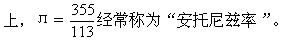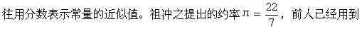 形式的圆周率最佳近似值。用这两个近似值计算,可以满足一定精度的要求,并且非常简便。祖冲之提出的密率也是一千年后才由德国人奥托(约1550—1605)和荷兰人安托尼兹(1527—1607)重新得到。但是,在西方数学史