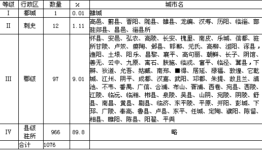 如上所述,秦、汉时期我国城市体系已具有自上而下的等级系列,形成了全国范围内的相对完整的城市网。这一时期城市的等级规模关系具有如下特征: 1.城市等级系列形成,规模结构以小城市为主 秦、汉时期,郡、县为我国一、二级行政区。秦时全国即已形成了首都——郡城(诸侯国都)——县城三级城市等级系列;到了汉代,为了强化地方统治,又增设了13~14个司隶部、刺史部统领各郡、县,形成了首都——司隶校尉部、十二州刺史部驻所——郡、国(王国)、属国都尉都城——县、邑、道、公国、侯国治所驻地的四等级系列。其分布与数量见详表(表4-1)。 由表4-1可见,东汉时期我国县城以上城市共有1076个,其等级规模结构具有明显的早期城镇体系特点:其一,以小城市(县级城市)为主体,根据统计,其时有县级城市966个,已占全国总城市数的90%左右;其二,层次分明,这一时期的城市等级系列除都城统领12个刺史部外,全国平均1刺史部约统领9个郡级城市,1个郡级城市又统领9个县城,表明了等级系列层次分明这一早期体系特征。 2.城市规模扩大,首位城市特大发展 秦、汉两代,由于比较稳定的政治局面,经济发展,生产力水平也得到了相应的提高。反映到城市建设方面,其建设规模有了明显的扩大,尤其是作为全国城镇体系核心的都城,其规模空前,达到了高度发展的程度。可以当时都城咸阳及东、西二京为例: (1)秦咸阳。秦自公元前350年迁都咸阳至秦亡,建都凡144年,尤其是秦统一六国后的十余年,作为全国的都城,使其一跃而成为全国城镇体系的首位城市,成为全国的政治、经济、文化中心和最繁华的都市。 用地规模。据《三辅黄图》记载,“咸阳北至九峻甘泉,南至鄠、杜,东至河,西至汧、渭之交,东西八百里,南北四百里,离宫别馆,相望联属”。可见整个咸阳城范围极大,即使按现代城市的概念,也可称得上畸形发展了。 人口规模。关于咸阳城的人口规模,其确切数无可查考。《史 表4-1东汉时期城市等级规模表
