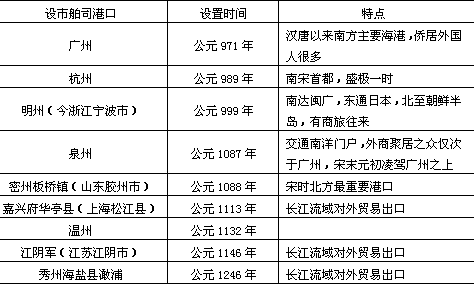 海盐县澉浦为市舶司(表5-1)。这些地方都是宋时的重要海港。其中广、泉、明、杭、密五州尤为重要,广州港的对外贸易额几占全国的90%以上。此外,还有长江口以北的通(南通)、楚(淮安)、海(连云港海州镇)诸州,长江以南的越(今绍兴市)、台(今浙江临海县)、福、漳、潮、雷(今广东海康)、琼等州,以及镇江、平江(苏州)两府也都是通航海港。 但应指出,宋代由于政治、经济形势动荡不定,海港城市兴废繁衰较多。北宋时,山东半岛勃海湾北岸属辽,有航海之禁。盛唐主要海港登、莱二州一蹶不振,与沧州、平州、都里镇诸地同降为次级的海港城市(镇)。南宋时由于金兵劫掠,南宋与金又长处南北对峙,扬州大港也很快衰落,国内贸易为真州(仪征)所代替,国际贸易分别退让于杭州、明州(宁波)。东南沿海海港城市发展迅速,广州、泉州和明州成为南宋三大贸易港。到宋末、元初,泉州因地处杭州、广州之间,港口条件良好,晋江流域又是丝、茶、瓷器的主要产区之一,成为国际著名大港,全国对外贸易中心也由广州逐渐移至此。至于福州也以交通条件优越,成为“工商辐辏之所”,国际贸易也很发达。 元时对外贸易和海上交通也很发达,宋代诸海港仍为主要的对外贸易站点。据记载,元时先后曾于长江以南的广州、泉州、温州、庆元(今宁波)、杭州、澉浦、上海等处设立市舶司。至于长江口以北的海上交通运输则以漕运为主。其时广州一方面是南方贸易中心,另一方面又是对外贸易大港。十三世纪摩洛哥旅行家伊宾拔都说:“广州是世界大城市之一,市场优美,为世界各大城市所不能及,其间最大的莫过于瓷器市场”①。这时的泉州成为对外贸易的最大港口,“番货远物,异宝奇玩之所渊薮,殊方别城富商巨贾之所屈宅,号为天下最”①。庆元港(今宁波)也是“远涉诸番,近通福、广,商贾往来要冲之地”②。上海其时“贸易日盛”,“户口繁多”,“民物富庶”,至元二十九年(公元1292年),“析华亭东北五乡,立(上海)县于镇,隶松江府”60000395_0087_2③。至于密州的板桥镇,秀州的青龙镇、澉浦镇,泉州的安海镇,平湖的乍浦镇等,则因海外贸易的关系而形成为集镇。但总的来看,这一时期海上贸易仍以广州、泉州和明州为中心,其中泉州且被堪称为“世界最大港口”。 (2)内地贸易城市的发展。辽、西夏、金朝的建立,促进了西北、东北地区城市的形成和发展,如辽阳、甘州(张掖)、灵州(灵武)、凉州(武威)、盐州(陕西定边)等。元代和林、大都等蒙古统治者的政治中心,也成为联结欧亚两大洲的陆路交通枢纽,为各国富商大贾陆路云集的大都市,其规模类似唐代长安。与此同时,东北的朝阳、西北宁夏(银川)也是中外商人集萃之地。 值得指出的是,公元1194年,黄河在北方金人统治下于河南决口,破坏了淮河水系,淤塞了汴河,原来沿线的一些商业城市和洛阳、开封、泗州(今江苏泗洪东南,盱眙对岸)等也相应衰落下来,而且种下了以后黄淮区域生产力一直低下的不幸祸根。