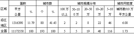 沿海地带,19个中等城市也有16个分布于这一地区,其时全国193个城市,即有147个分布于东南沿海地区,计占总数的76.2%。东南沿海地区城市网密度为中部地区的3.3倍,为内陆地区的41.3倍。 再从历史统计资料看,其时上海、北平(今北京)、广州、天津、南京、汉口、香港、杭州、青岛、沈阳等10个50万人口以上的大城市,除汉口、沈阳外,均集聚沿海地带,形成了我国华北沿海的(北)京(天)津唐(山)城市群地区;胶东半岛的青(岛)烟(台)轻工业城市区(包括威海卫、龙口、石岛、连云港等);以上海为中心,包括苏、锡、常、通、杭、嘉、湖、宁、绍等城市的长江三角洲城市密集区;东南沿海包括温州、泉州、福州、厦门、漳州的沿海港口城市带;珠江三角洲以广州、香港为中心的轻工外贸城市区;以及潮汕平原城市(镇)群,共同组成了我国沿海城市密集带。
