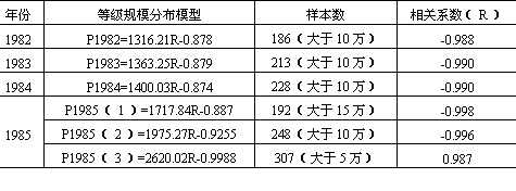 根据1982年、1983年、1984年、1985年四年份我国城市非农业人口统计资料,采用回归分析方法,求出我国城镇等级规模分布幂函数模型为表9-7: