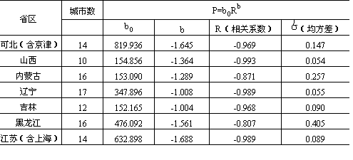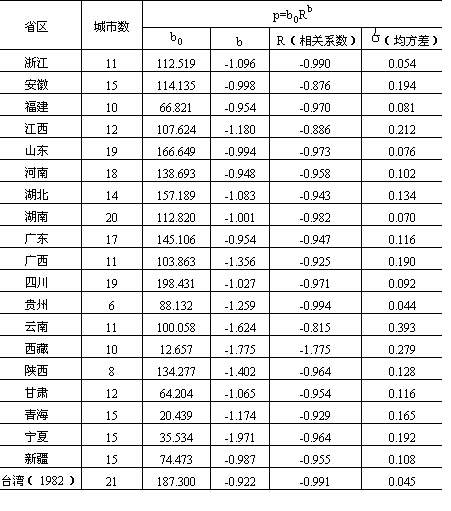 表9-8 我国分省区城市等级规模幂函数模型