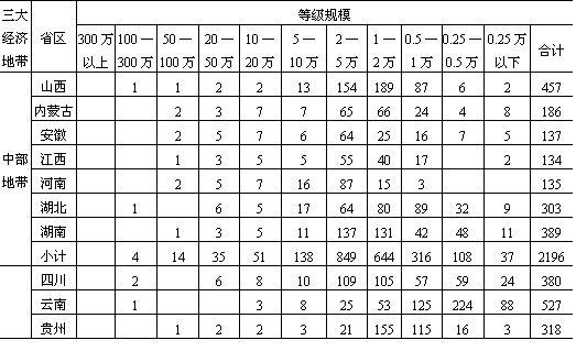 说明:(1)台湾省及港澳地区资料暂缺; (2)大陆612个市辖镇、497个县辖镇因人口资料暂缺也未计入; (3)等级规模按城镇人口统计分级。