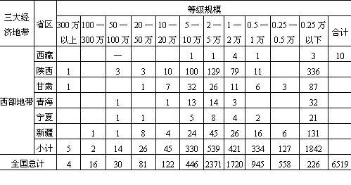 的西部地带,城镇等级规模系列均不够完整,有些以小城市、小城镇为主,如西藏、青海、宁夏三省区。有些大城市特别发育,但大、中、小各级城市(镇)比例结构失调,如云南、甘肃、陕西等省区。