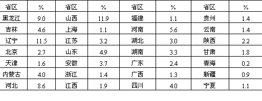 表11-4 我国分省区货物发送比重(1984年)