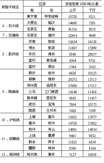 客流的产生,主要取决于国家城镇分布、经济发展水平、交通 表11-8 我国主要铁路干线区段货流平均密度表(1984年)