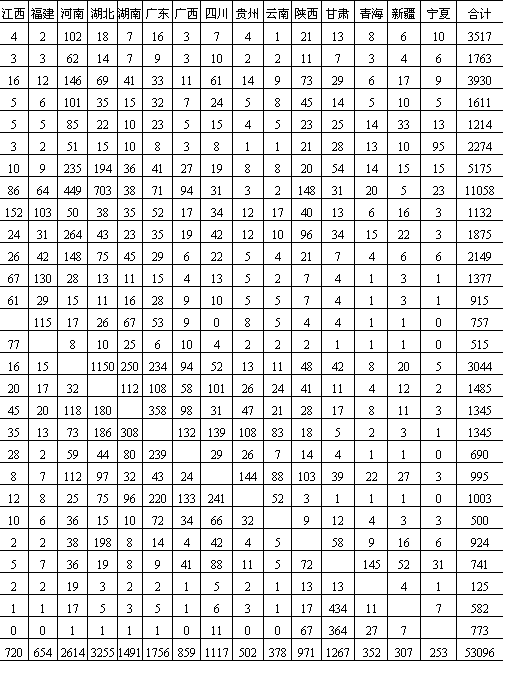 运输方便程度,以及各种社会、经济、文化联系等因素。因此,城镇间客流也是反映我国城镇体系内各城镇间联系的标志之一。 1.城镇间客流特征 建国以来,我国新老工业基地之间、市郊城区与工业镇之间客流不断增加。与此同时,随着人民物质生活的逐步提高,文化科学技术交流日益频繁,旅游事业也有了迅速发展,各种运输方式完成的旅客运量有了很大的增长。据1985年资料统计,我国客运量、旅客周转量分别比1949年增长41.4倍和27.6倍。城镇间客流具有如下主要特征: (1)客流较经济发达国家为低。以铁路客运量为例,1985年我国铁路旅客运量为11.211亿人次,接近于美国1916年(10.19亿人次)的水平,仅为日本1976年铁路客运量71.8亿人次的15.6%。从人均旅行次数看,差距更大。据1985年资料统计,我国人均年旅行总次数为5.45次,其中铁路为1.08次,公路为4.10次,水运为0.25次,民航为0.007次。而苏联1974年人均乘火车即达13次,1978年美国人均乘飞机1.2次。可见我国城镇间客流频率就世界范围而言是比较低的。 (2)客流发生地主要集中在东北地区、华东地区、中南地区,以及四川、河北的城镇和人口稠密地区(表11-10),尤其在我国华说明:(1)海南省包括在广东省内;(2)台湾省、西藏自治区及港澳地区因资料暂缺,未列入。资料来源:交通部1985年统计资料。 表11-9 中国省区际货流统计表(1984年)