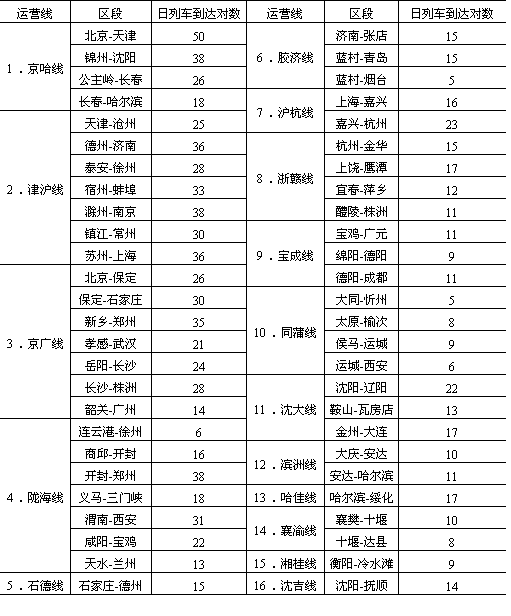 株洲等铁路客流中心。据1985年资料统计(表11-12),全国铁路开行10对以上客车的72个区段,有51个区段分布在津沪、京广、京哈、沪杭等铁路干线。这些铁路客运干线区段的客运密度已超过全国平均客运密度的5—10倍。尤其北京——天津、锦州——沈阳、德州——济南、宿州——南京、南京——上海、保定——石家庄、新乡——郑州、开封——郑州、渭南——西安等铁路区段,日到达列车对数均超过30对以上。尽管如此,我国客运列车能力仍然不足,超员现象严重。据典型调查,津沪、京广、京哈、胶济、浙赣、沪杭、沈大、沈吉等20多条主要干线上的25对特别快车和直通快车几乎次次超员,最高达100%。上海、郑州、沈阳、济南、南昌、广州等铁路局的列车超员更为严重。 我国水运客流主要有长江与沿海两条航线。长江为我国东西长途客流的最主要水运航线,其沿线地方各港完成的客运量约占全国地方水运企业客运量的50%以上。其中以南京——武汉段客流量最大,武汉、南京已形成我国内河水运客流中心。沿海航线以南北流向为主的水运长途客运干线,地方客运量约占全国客运量的48%。尤其是北方航线,以上海——青岛、上海——大连、大连——