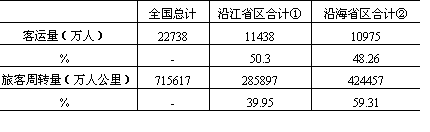 注:①沿江地区包括江苏、安徽、江西、湖北、湖南、四川、云南、贵州8省区; ②沿海地区包括辽宁、山东、上海、天津、浙江、福建、广东、广西7省市区。 说明:本表统计数据不包括交通部直属企业客运量。 资料来源:《中国统计年鉴》(1986年)。