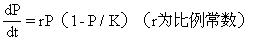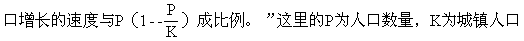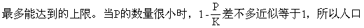 人口的增长速度与P成比例地连续增长,但是,当P大于1/2K时,1-P/K小于0.5,人口增长速度逐渐减慢。根据以上的假定,人口增长的速度为: