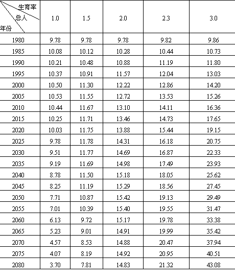 说明:(1)生育率为全国育龄妇女平均生育数; (2)台湾省及港澳地区未列入。 资料来源:引自宋健、于景元:《人口控制论》第235—240页。