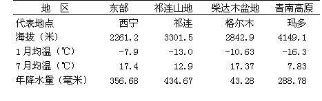 青海地处青藏高原东北部,深居内陆腹地。省境土地面积广大,地形复杂,地势高耸,高差悬殊,形成独特的自然环境。地形、气候、植被、土壤等自然条件的地区差异和垂直差异均甚显著,自然资源丰富多样,为经济发展提供了极为广泛的自然基础。 地质与地貌 地质构造上,全省自北而南为:①祁连褶皱系,位于河西走廊过渡带之南,包括整个祁连山区,是在晚古生代华力西褶皱带和中生代晚白垩世到第三纪始新世褶皱带(燕山褶皱带)基础上形成的,以块状断裂升降运动居优势。②柴达木地块,是以前寒武纪结晶片岩为基底的稳定地块,厚七八千米,大部为疏松的中生代和新生代陆相沉积,形成盐湖矿产。③昆仑褶皱系,由于受后期构造运动作用,形成块体的连续推复,新老地层交替重叠。④巴颜喀拉褶皱系,位于昆仑山主带大断裂之南,玉树大断裂以北地区,包括东段的阿尼玛卿山,总体构造线呈北西向,为一具有旋回特点的复杂褶皱系。⑤唐古拉褶皱系,分布于青海南部唐古拉山区,形成于侏罗纪,呈北西西向,具有多旋回特点。 由于受地质构造的控制和新生代喜马拉雅运动的影响,自第三纪末开始,青海地势不断抬升,形成高山、丘陵、平滩、盆地、高原、谷地交错分布的格局,平均海拔约在3000米以上。除东部湟水流域谷地和西北部柴达木盆地海拔稍低外,其余绝大部分地区海拔多在3000~4500米左右。最高点为西部青、新交界处的昆仑山主峰布喀达坂峰,海拔6860米,最低点则为东部民和县下川口湟水出境处,海拔1 650米。 ①省境北部为祁连山—阿尔金山山地。阿尔金山脉位于当金山口以西,由一系列山岭与谷地组成,平均海拔3600~4000米,是柴达木盆地和塔里木盆地的界山。祁连山地位于甘、青交界处,由数列呈北西西—南东东走向的平行山岭和谷地组成,山地西段和中段地势高峻,许多山峰均在现代雪线(海拔4400米)以上,多为永久积雪和冰川所覆盖。祁连山地东段地势较低,主要有冷龙岭、达坂山、拉脊山3条山脉和大通河、湟水、黄河3个谷地。山地海拔一般约4000米,大部分为天然草场,部分生长天然林。蕴藏有丰富的矿产资源,其中石棉储量占全国总量的86%。海拔3 000米以下的河谷及其两侧的梁状或塬状丘陵,为青海重要的农业区(见祁连山脉)。青海湖位于祁连山东南的大通山和青海南山之间,湖滨冲积平原的农牧利用条件尚称优越。②省境西北部阿尔金山、祁连山和昆仑山之间,为著名的柴达木盆地,四周高山环列,山前洪积平原发育,中部低平,形成众多的盐湖和大面积沼泽,盐类、有色金属、石油、天然气、石棉等矿产资源丰富,素有“聚宝盆”之称。③省境南部主要由昆仑山脉及其支脉可可西里山、巴颜喀拉山、阿尼玛卿山、唐古拉山脉等组成的青南高原,海拔4500~5000米以上,常年积雪的山峰甚多。高原西部和中部地形较平缓,相对高差不大,河流切割不显著,高原面形态较完整,为长江、黄河、澜沧江的发源地,素称“江河源头”;高原东南部山岭高峻,河流深切,形成起伏较大、地面较破碎的高山峡谷地貌形态;高原东北部地势较低,黄河及其支流切割较深,形成许多台地和谷地。台地地面多较平坦,土层深厚,除部分地区为流动沙丘外,大多利于农、牧利用。谷地内有数级阶地,为牧区中小块农业区。 气候 青海由于地处高原,深居内陆,远离海洋。 终年受大陆性气流及青藏高原气团影响,形成寒冷而干燥的气候特征。全省年均温为-5.0~8.6℃,1月均温-18.2~-7.0℃,7月5~21℃。气温年较差小,日较差大,积温低。冬季寒冷而漫长(半年以上),夏季凉爽而短促。日照时间长,太阳辐射强。气温和降水地区差别大,垂直变化显著(见表)。多大风、沙暴、冰雪。东部黄河和湟水谷地年均温3~9℃。 生长期140~230天,年均降水量250~550毫米,主要集中于6~9月,雨热同期,可满足一年一熟的需要,是全省开发最早的主要农业区和商品粮基地。柴达木盆地年均温2~5℃,生长期150~200天,日照长达3000小时以上,盆地北部和南部边缘为新垦区和小麦高产区。青南高原和祁连山地海拔高,气温低,不宜农耕,但降水多,草原面积大,为省内主要牧区,局部山地有森林和灌木林。 青海不同地区气温和降水量