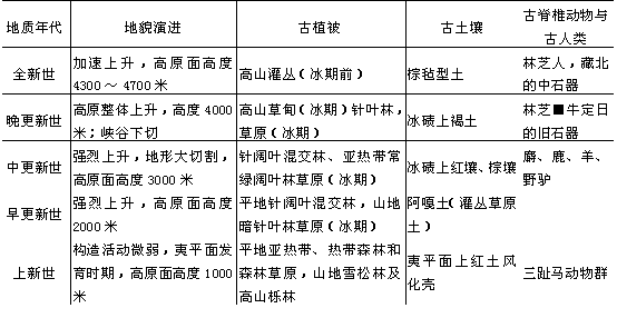 过了8000米。这些高大山脉构成了高原地形的骨架。高原地形结构的区域性差异明显,高原腹地藏北地区(见羌塘高原)为高原面保存较完整的典型高原;藏南雅鲁藏布江中游流域为山原宽谷地形;青海柴达木为一大盆地(见柴达木盆地);川西滇北的横断山区则为强烈切割、高差悬殊的高山峡谷地形等等。 高原是地球上中低纬度地区最大的冰川作用中心。 冰川覆盖面积约4.7万平方公里,占全国冰川总面积的80%以上。现代冰川主要集中在念青唐古拉山、喜马拉雅山中段、西昆仑山、喀喇昆仑山和祁连山等地。雪线高度位于海拔4500~6200米,大致东部低、西部高,南部低、北部高。高原上冰斗、槽谷、冰碛垅堤及冰水洪积扇等古代的与现代的冰川地形普遍发育(见中国的冰川)。 高原上冻土面积150万平方公里,为北半球中低纬度地区冻土分布最广、厚度最大、海拔最高的地区。冻土形成于距今1~2万年前的晚更新世,一直延续至全新世。大致冈底斯—念青唐古拉山脉以北为多年冻土区,余为岛状冻土或季节性冻土区(见中国的冻土)。由于土内冻融活动引起地面变形或一系列有关的冰缘地貌类型,诸如冻胀丘、冰椎、热融洼地与热融湖等。剧烈寒冻风化作用形成许多岩屑坡、石海及石柱等。还有融冻泥流及冻融分选作用所形成的石堤、石环及多边形土等等。 在高原的部分干燥的宽谷及湖盆内常见风蚀作用形成的流动沙丘与戈壁滩(见中国的沙漠,中国的戈壁);许多石灰岩山地有古代的或近代的喀斯特地貌(溶洞、石芽、峰林、孤峰、石墙等,见中国的喀斯特);藏北昆仑山一带有4处火山群,有火山锥、方山及熔岩平原等火山地貌(见中国的火山)。 高原是中国主要地震区。进入20世纪以来已发生过6次8 级以上的大地震。高原又是中国强烈的地热区,特别是在高原南部喜马拉雅山一带水热爆炸、间歇喷泉、沸泉及温泉广泛分布,蕴藏有丰富的地热能资源。 水文、气候与动植物高原南部与东部的边缘山区河网密集,较大的外流河有属于印度洋水系的雅鲁藏布江(大支流有拉萨河、年楚河、尼洋曲与帕隆藏布等)、怒江、朋曲及属于太平洋水系的长江、黄河与澜沧江等大河的上游段。水力资源丰富,河流侵蚀切割强烈,大河谷地深邃险峻;高原内部河网稀疏,季流河居多。高原上湖泊总面积约3.2万平方公里,尤以藏北内流区的湖泊面积大,数量多。因气候趋干,许多湖泊退缩,形成宽坦的湖滨平原,各湖盆之间多为低缓山丘相隔,地形开阔。除少数淡水湖及纳木错、色林错等较大的咸水湖外,多数湖泊因长期缺乏充足水源补给和湖水蒸发浓缩,已演化为高矿化盐湖,甚至成干涸盐沼,蕴藏有丰富多样的矿盐。随高原继续隆起及其气候进一步变冷趋干,湖泊退缩的趋势有增无减。 青藏高原占据了大气圈中对流层厚度的一半左右。冬季受西风急流控制,风大而干燥;夏季受西南季风影响较深,温度升高、降水增多。气候总特点是气温低,年较差大,太阳辐射与日照充足,并为世界年雹日数最多(那曲、理塘一带年雹日数20或30天以上)、多雹区范围最大的地区。高原下垫面相对于高原四周的自由大气来说是个热源,这一因素使青藏高原的农业种植上限及森林植被分布的高度均较同纬度的其他山地高出约千米,使它成为世界上最高的农业活动地域和森林分布区。在纬度和地势双重影响下,高原各地年均温由东南部的20℃以上递降至西北部的-6℃以下。受多重高山阻留,年降水量也相应地由2000多毫米渐减至50毫米以下;喜马拉雅山脉中西段北侧为雨影地区,年降水量不足600毫米。 与上述水热条件相联系,高原东南部天然森林茂密,有储量丰富的各类森林资源,野生动植物种类也极繁多,发育着类型众多的酸性的森林土壤,土壤表层腐殖质积累过程、原生矿物风化作用及淋溶作用等均较强烈;其余大部分地区主要为多年生中生或旱生的灌丛与草本,拥有广袤的天然牧场,但动植物种类较简单贫乏。发育着碱性的草原土壤和漠境土壤,生物、化学作用相对减弱,土壤有机质含量较少、砂砾含量较多、淋溶作用弱。上述这些生态环境的特点决定了青藏高原上宜林地域偏于喜马拉雅山南侧和横断山脉一带,适宜种植业活动的地域局限于东部和南部海拔较低、气候较温暖的湖盆宽谷地段、而大部分高寒地区则除部分可供放牧利用外,大多为荒野之域。 自然地理区 在地势高度、地理纬度和距海远近等诸因素共同作用的制约下,随着高原由东南暖湿向西北干冷递变的水平带状分异,出现森林、草原、荒漠等不同自然景观地带的依次更迭。山地自然景观垂直带谱性质也由东南部的海洋性湿润型递变为高原腹地的大陆性干旱型,其优势垂直带相应由森林成分转变为草原及荒漠成分,带谱结构由繁而简,景色惭趋单调。喜马拉雅山南侧,从山麓海拔数百米的热带雨林或常绿阔叶林开始,往上相继为针阔叶混交林、暗针叶林、灌丛、草甸直至雪线以上的高山永久冰雪带等不同类型的垂直自然带,几乎重现了从低纬度的热带至高纬度的寒带或极地带之间所有主要的水平自然地带,成为中国山地自然景观垂直带谱最完整之典型。自然地域的水平分异和垂直分异紧密结合是青藏高原地表自然界区域分异的显著特点。根据地势结构、生物气候环境与垂直自然带谱及土地开发利用等方面的区域差异,青藏高原可划分为10个自然地理