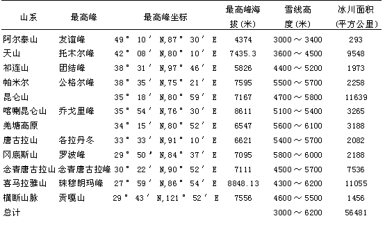 000平方公里范围内冰川覆盖面积约1 600平方公里。在许多大冰川的冰舌区还普遍出现冰塔林。古冰斗、冰川槽形谷地、冰川或冰水侵蚀堆积平台、侧碛和终碛垄等古冰川活动遗迹也屡见不鲜。寒冻风化强烈,峰顶岩石嶙峋,角峰与刃脊高耸危立,遍布岩屑坡或石海。土壤表层反复融冻形成石环、石栏等特殊的冰缘地貌现象。