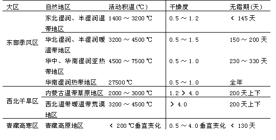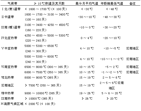 000~3 500℃,持续150~170天,无霜期除东北部为100~135天外,大多达150~170天。年均温日较差12~14℃。