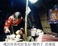 饮食:藏族多生活在高原地区,以农牧业为主。他们以粘粑和牛羊肉为主食,喜欢喝酥油茶和奶茶。粘粑是将炒熟的青棵或豌豆面粉用茶水拌成的一种食品。酥油茶是将酥油与热茶倒入特制的木简捣拌而成。此外,藏族还喜欢喝青棵酒、酸奶,吃奶渣等,有的地区也食用米饭和面条。