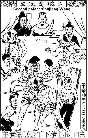 二殿楚江王司掌大海之底.正南沃 石下活大地狱.此重纵广五百由旬.另设十六小地狱.